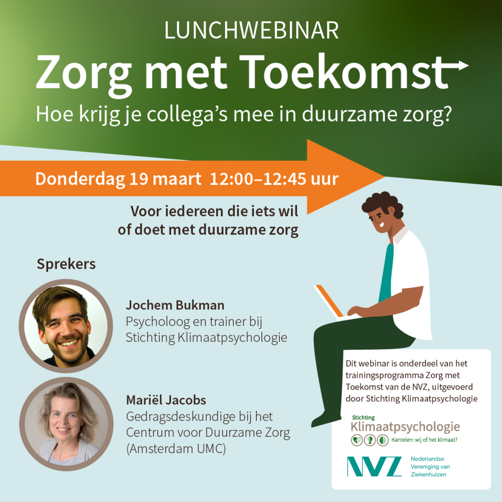 Lunchwebinar ‘Zorg met Toekomst: Hoe krijg je collega’s mee in duurzame zorg’?